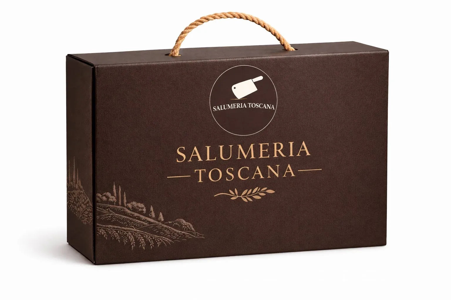Every cured meat is produced by selected Tuscan artisans following traditional recipes. The Rigatino Toscano is aged using the methods of the Florentine countryside. The Soppressata Toscana is made from whole cuts of Tuscan pork. The Salamino al Tartufo brings the scent of the Tuscan woodland into every slice. No product is there to fill the box — each one earns its place.